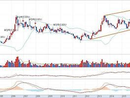 주봉차트다. 한차례 급등후 반등하였으나 전고점 아래에서 하락하며 추세하락하고 있다. 저점은 꾸준히 높이며 상승중으로 현재의 하락구간이 어디에서 반등 줄지는 지켜봐야 할 시점이다.